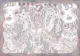 ケント紙にペン、鉛筆、パステル |